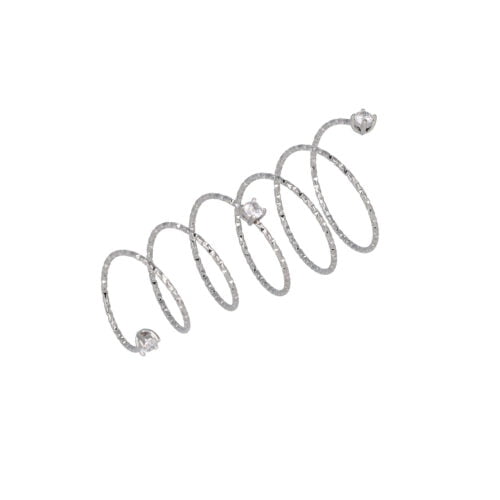 Anello in acciaio inossidabile a spirale decorato da 3 brillantini incastonati. Lunghezza 5 centimetri.
