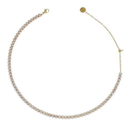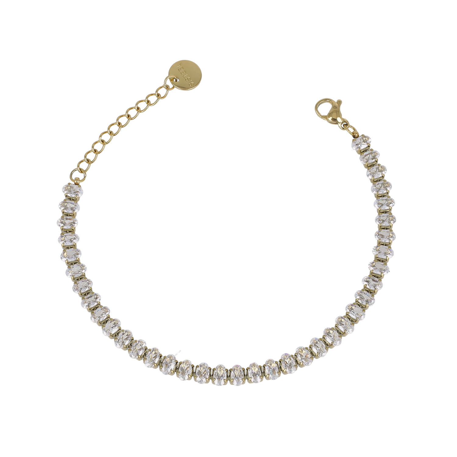Bracciale in acciaio inossidabile , con estensione per misura regolabile. Catena di strass dalla forma ovale.