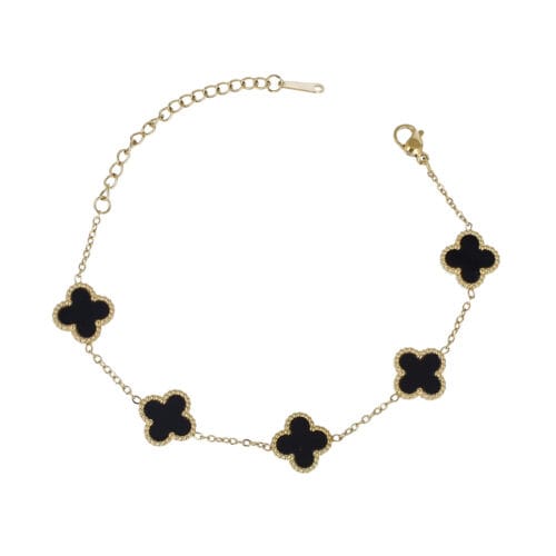 Bracciale in acciaio con fiori colorati smaltati, simbolo di fortuna e allegria. Ispirato allo stile Van Cleef, è il mix perfetto tra stile raffinato e freschezza.