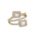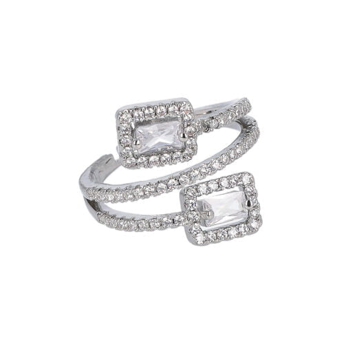 Anello a fascia regolabile in ottone con decorazione di strass e due pietre rettangolari