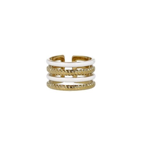 Quattro fasce in una, per un effetto wow garantito! Questo anello unisce eleganza e colore con fasce alternate in smalto vivace e oro lucido. Per mani che non vogliono passare inosservate.