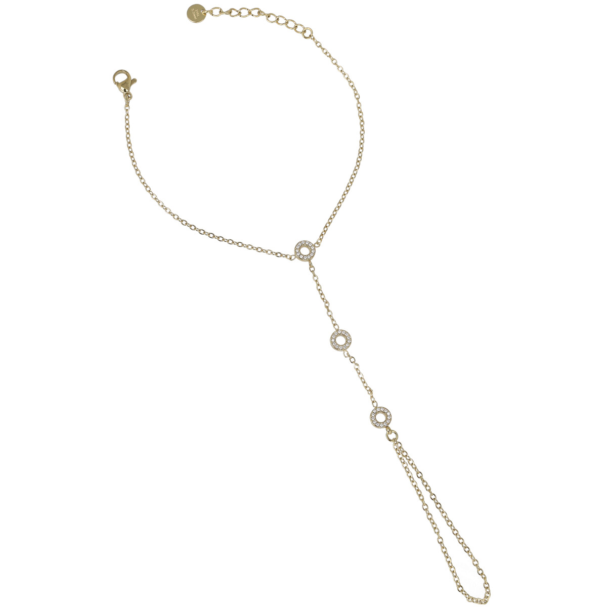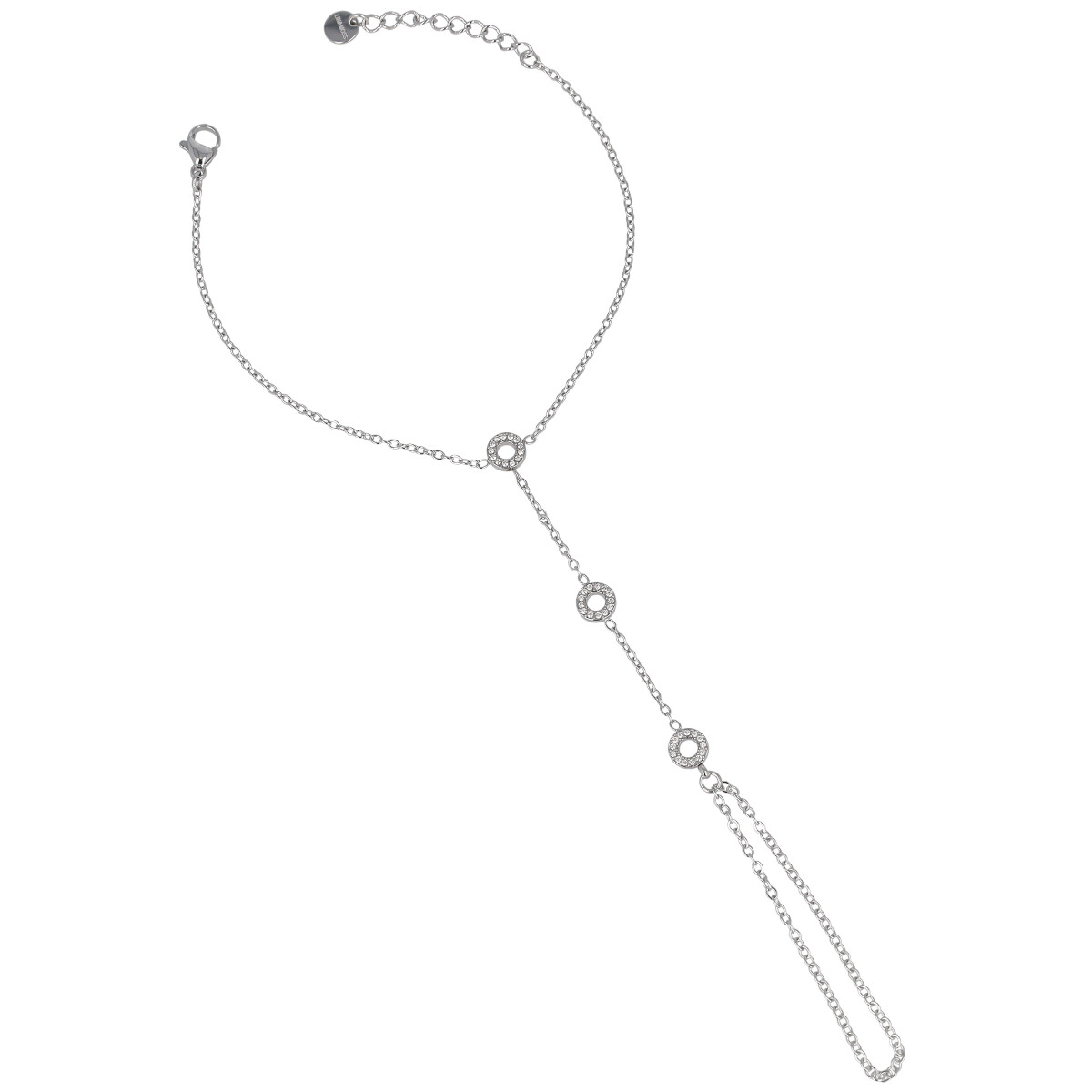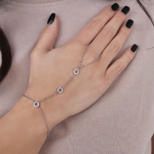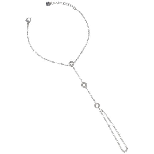 Questo baciamano con cerchi di zirconi illumina la mano con discrezione ed eleganza.