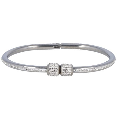 Bracciale bigiotteria da donna in acciaio inossidabile a manetta e chiusura a scatto con zirconi