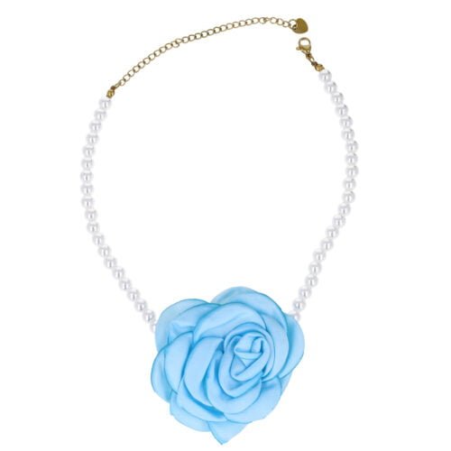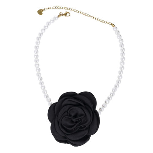 Collana bigiotteria con chiusura in acciaio inossidabile con estensione, perline bianche con fiore colorato