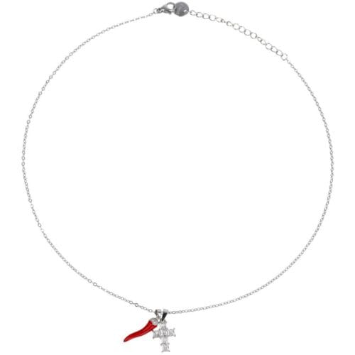 Tradizione e significato in un bijoux: il cornetto rosso incontra la croce, per chi ama portare con sé un doppio simbolo di protezione e fede. Un design minimal ma d’effetto, ideale anche come idea regalo.