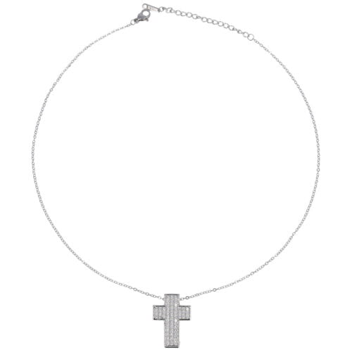 Collana di bigiotteria donna in ottone dipinto con catenina 40+5 cm pendente croce decorata da strass da 2,5 x 2 cm
