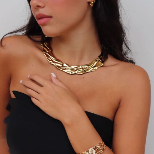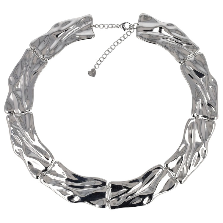 Un gioiello dallo stile scultoreo e d’impatto: questa collana girocollo in acciaio presenta maglie grandi e irregolari dall’effetto ondulato, che donano movimento e originalità. Disponibile in oro e rodio, è un accessorio perfetto per chi ama distinguersi con dettagli forti e sofisticati.