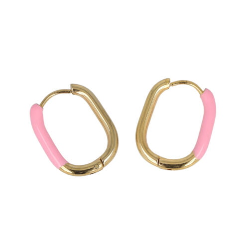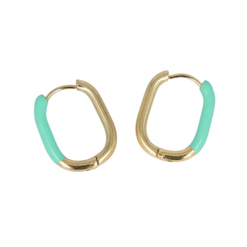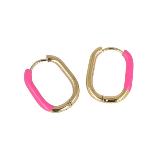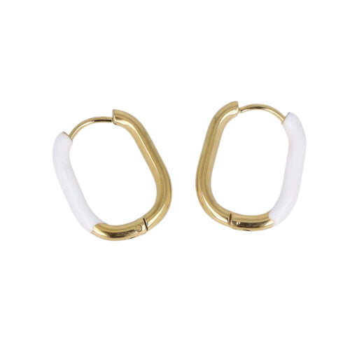Orecchini bigiotteria in acciaio inossidabile forma ovale dorati con smalto. Misura : 2 cm