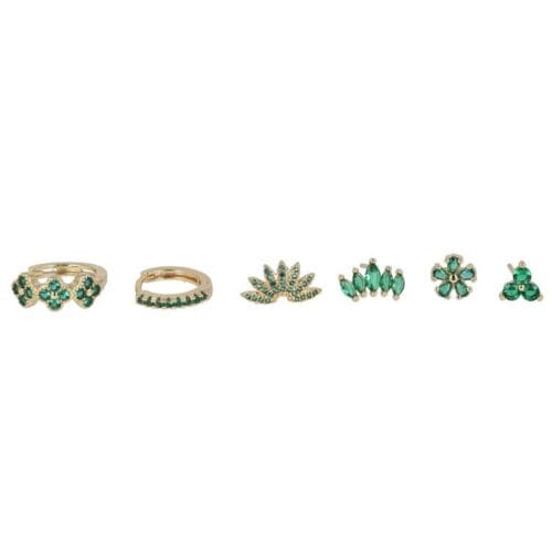 Un mix irresistibile di forme e brillanti! Questo set include 6 modelli di orecchini a perno, punti luce e mini cerchi con strass colorati. Scegli ogni giorno un look diverso oppure mixali insieme per uno styling da vera trend setter!